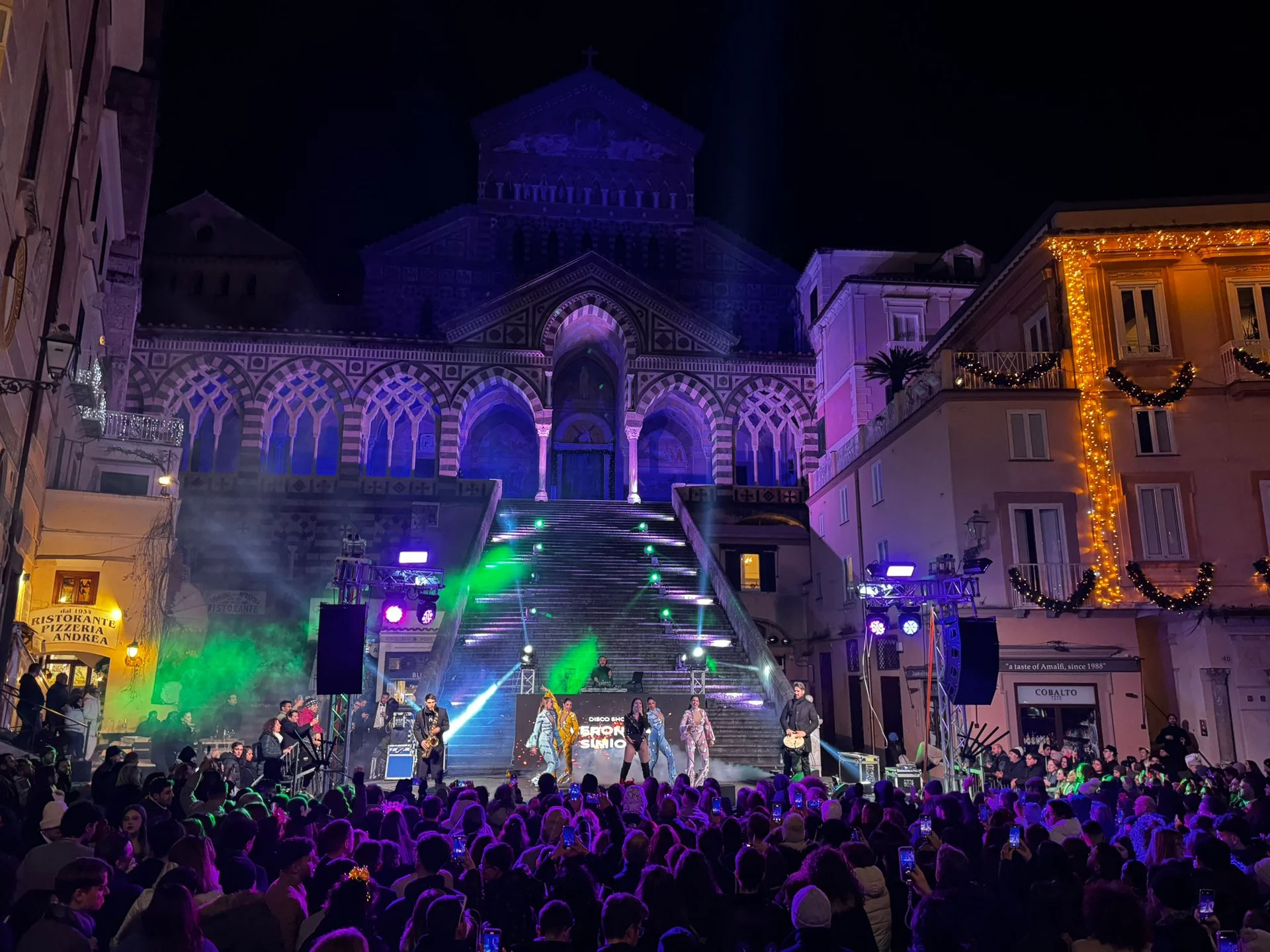 Festa di Capodanno spettacolare con impianto audio e luci per celebrare l'arrivo del nuovo anno